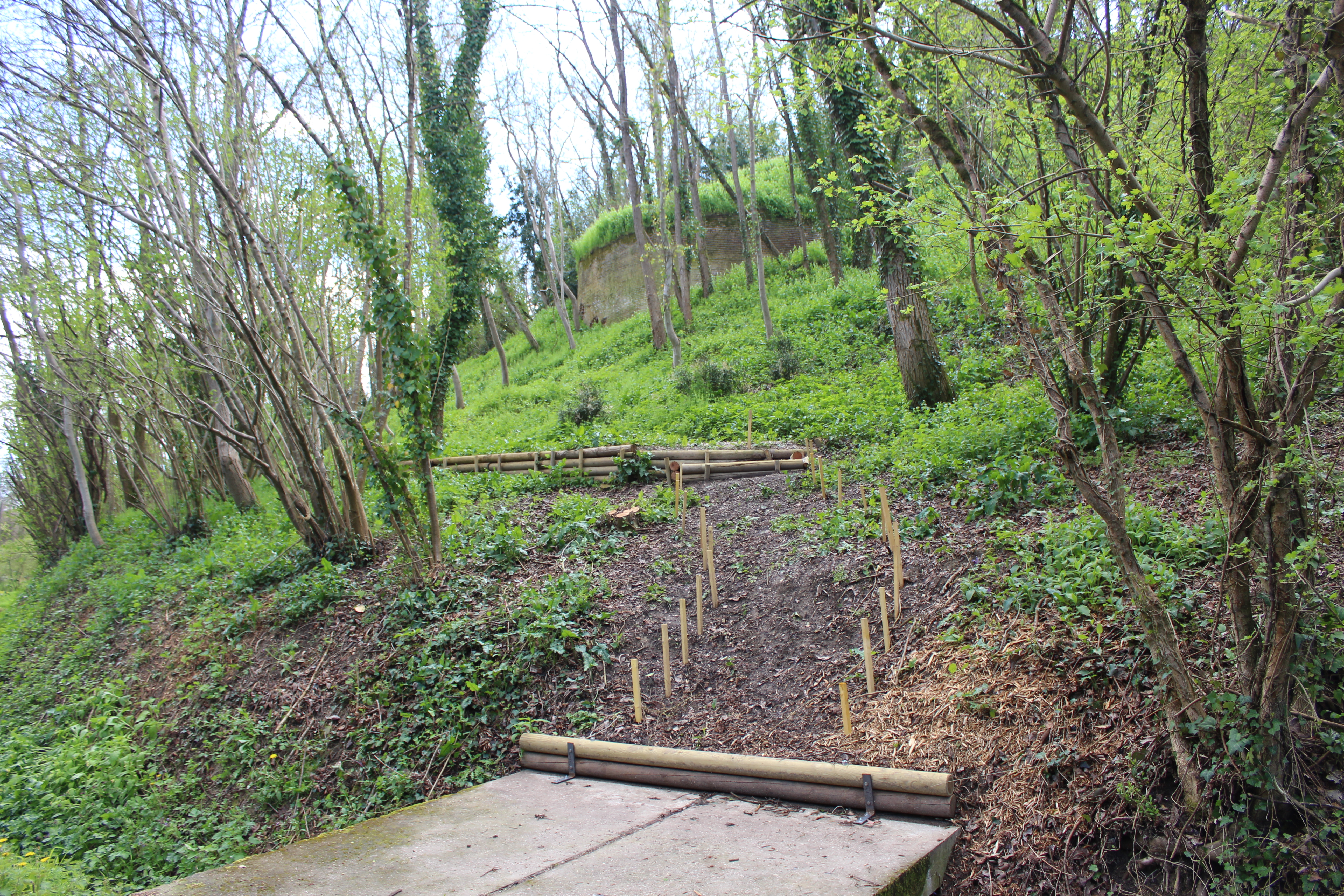 L’objectif est de réaliser l’escalier d’accès à l’aire de pique-nique au pied de la tour Papou (dernier vestige des murailles de la ville côté ruisseau de Bifranc).