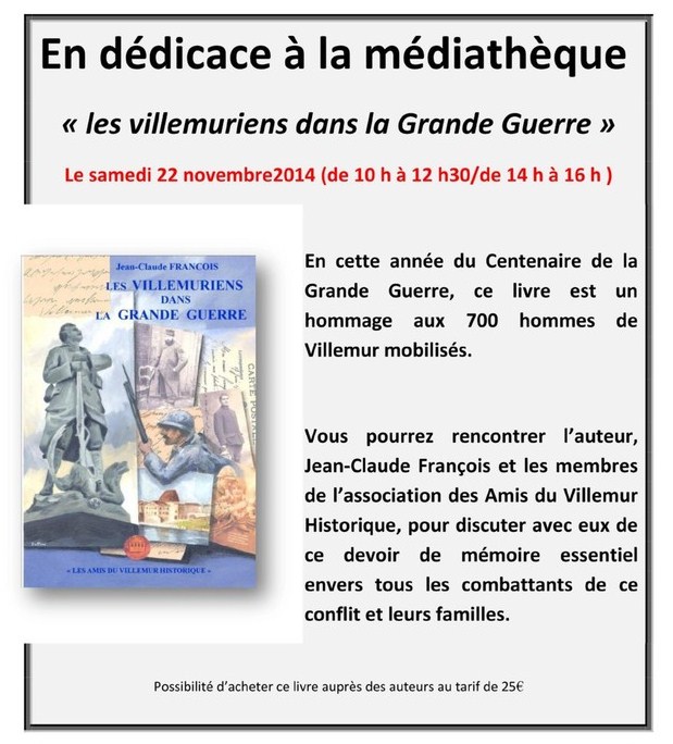 Journée dédicace du livre de Jean-Claude FRANCOIS  » les villemuriens dans la Grande Guerre «