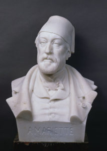 En 1895, l’Etat lui confie une commande pour les galeries du musée de Versailles. Il va alors sculpter ce qui reste son œuvre majeure : la réplique en marbre du buste de l’égyptologue Auguste Mariette (1821-1881) d’après l’œuvre originale exécutée en 1879 par Alfred Jacquemart. (2)