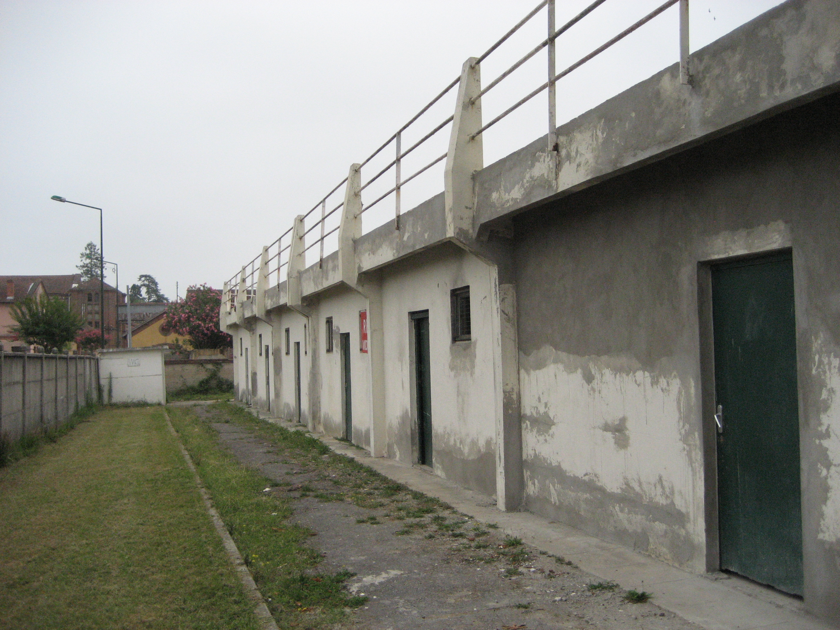 Au début, les vestiaires étaient sous les gradins et le public accédait au bassin par quelques marches après le passage obligatoire à la douche.
