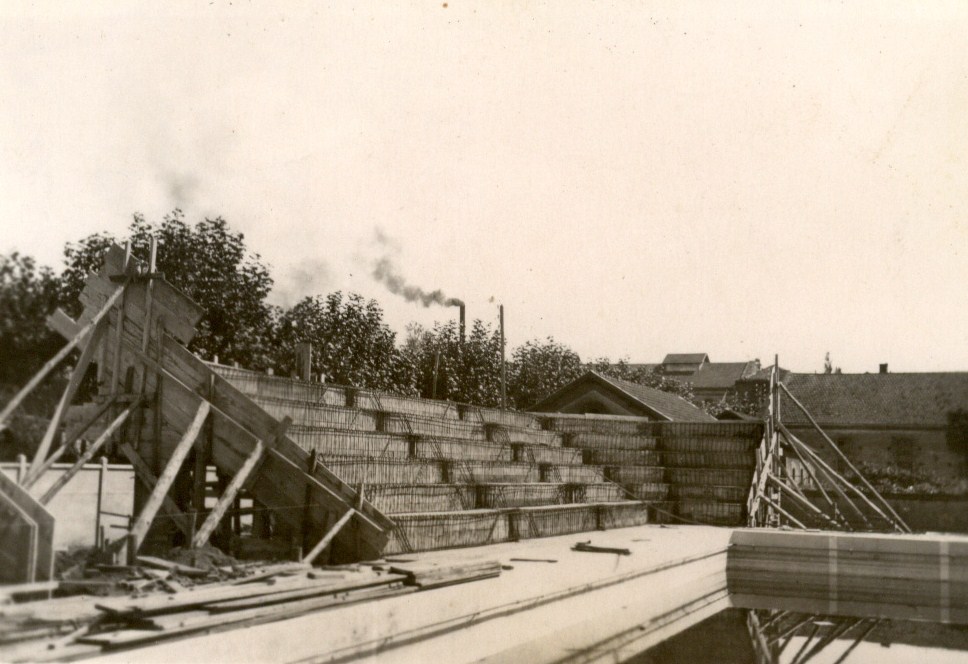 Le choix du béton armé dénote une volonté d’afficher une image résolument moderne, en lien avec le projet social de l’époque. C’est un matériau récent et hygiénique, tout à fait adapté aux valeurs du sport dans les années 30. Il est aussi probable que le prix concurrentiel et la mise en œuvre rapide de ce matériau aient constitués des atouts majeurs pour la construction d’un ensemble tel que le Parc des Sports.