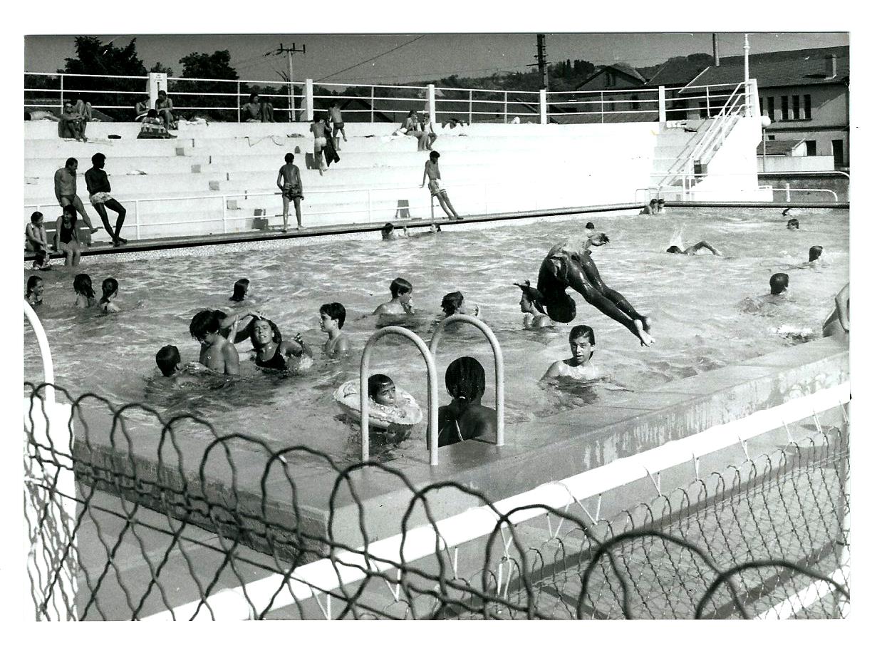 Mes grands-parents dont la maison se situait en face les gradins, élevaient deux cochons chaque année, De temps en temps, il arrivait qu’un spécimen très costaud défonce la porte de l’écurie ou saute le muret de son enclos pour aller déambuler sur la route vers le stade. C’est là que les jeunes installés sur les gradins de la piscine riaient de la scène, et aussi de voir mon oncle et mon grand-père courir derrière le cochon avec un bâton, tout en criant ou jurant en patois.