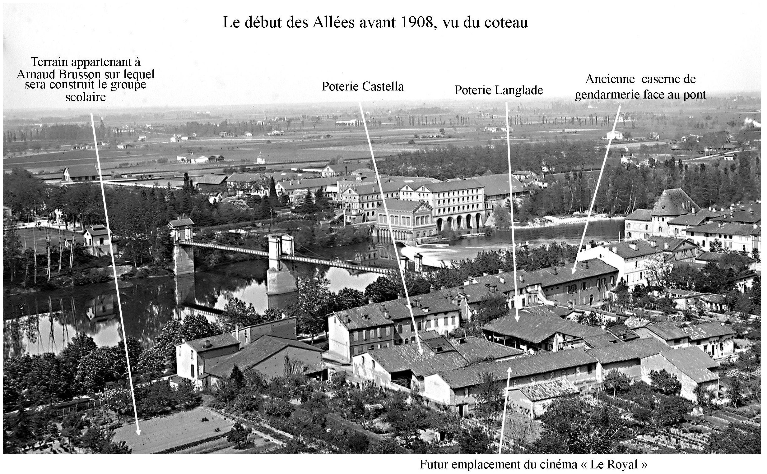 À l’aube du XXe siècle, 14 familles sont établies sur les Allées, dont le cafetier Cayla, les menuisiers Jean Fonvieille et Pierre Sabatié, le docteur Siuroles. On y retrouve également les potiers Bernard Langlade (5) et Jean Castella (6) . Quelques villas de caractère se construisent dans la partie supérieure des Allées, en particulier au n° 7 « La villa de la Tour » dont nous reparlerons dans un prochain chapitre consacré à la Tour Béziat.