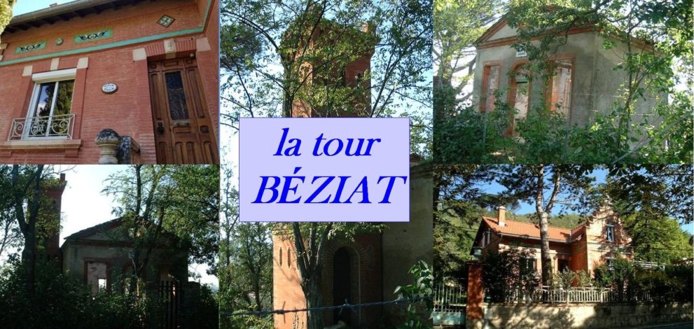 C’est en 1885 qu’il achète à Antoine Galan menuisier, un premier terrain au bord de la route menant à la Croix de la Peyre. C’est là que quelques années plus tard, en 1889, il fera bâtir cette petite construction en briques rouges surmontée d’une tour crénelée : la tour Béziat était née ! C’est le maçon Casimir Raujol, natif de Beauvais-sur-Tarn, et grand-père maternel de Lucette Castanet qui assura la construction de cet édifice. (1) Au faîte de la tour il fera placer une girouette, peinte par Théophile Moreau en 1894, qui la même année, à la demande de Béziat, peindra deux pancartes sur lesquelles on pouvait lire : « pièges à loup » et « Défense d’entrer ». Histoire d’éloigner de la tour, que l’on appelait aussi « le châlet, » les promeneurs trop curieux !