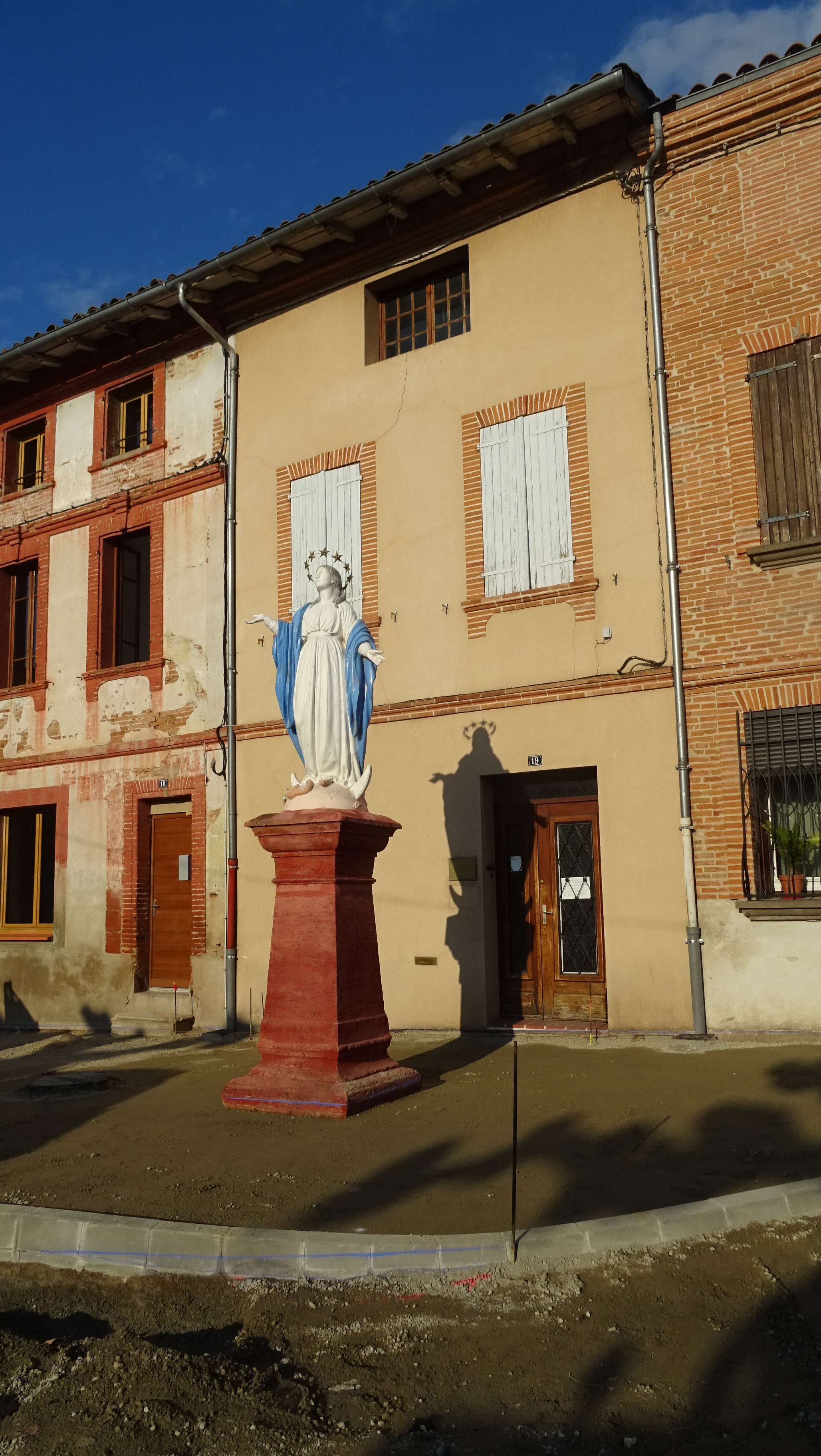 En attendant les derniers travaux d’aménagement et l’inauguration de la « nouvelle place du Souvenir » nous constatons avec satisfaction le retour de la statue de la Vierge qui, rappelons-le, a été érigée en 1876, et fait partie intégrante du patrimoine de la ville.
