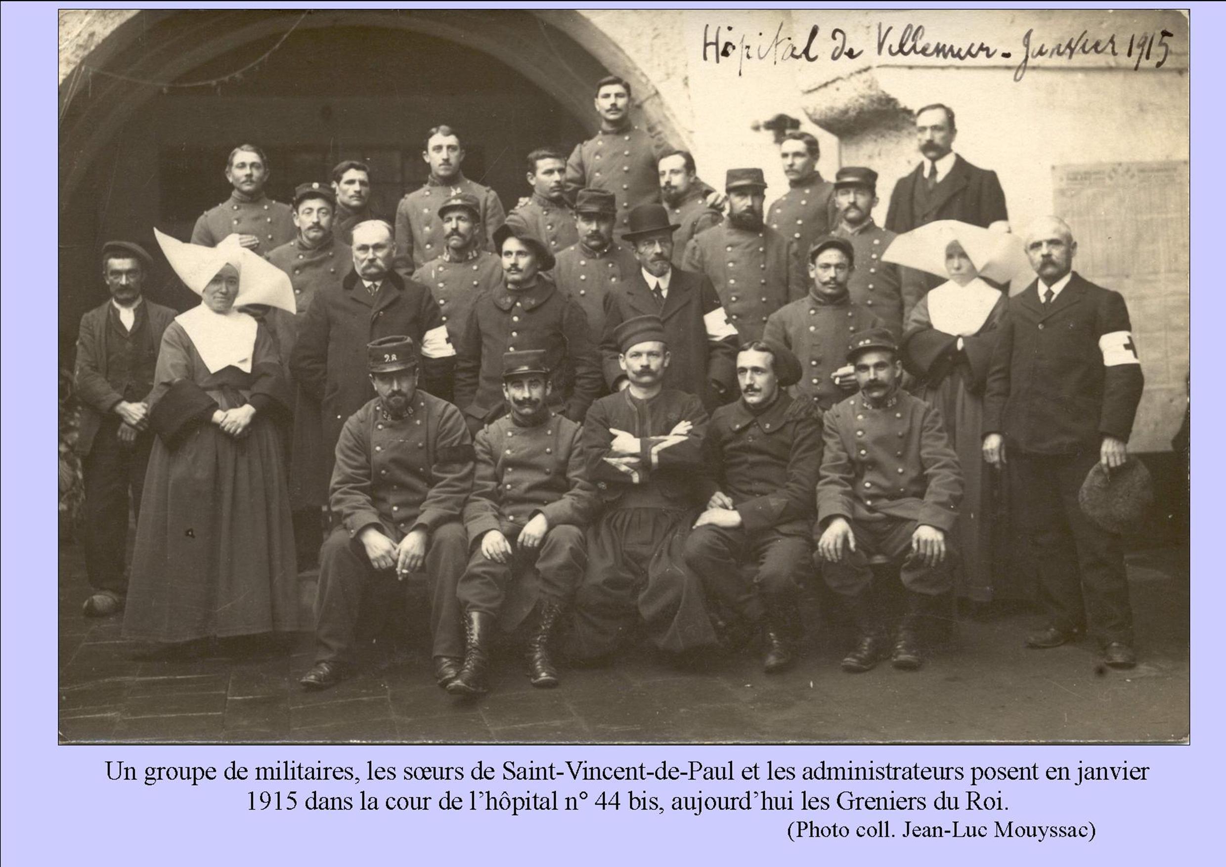 14 octobre 1914, une délibération du conseil municipal suggère de participer à l’effort de guerre en accueillant des blessés. L’hôpital militaire bénévole N° 44 bis de 30 lits s’installe dans les Greniers du Roy.