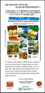 Et puis, après bien d’incertitudes liées à la situation actuelle, la décision a été finalement prise, en accord avec la municipalité de Villemur-sur-Tarn : l’exposition 2020 aura bien lieu. Elle sera consacrée à une rétrospective des expositions de 2009 à 2019. Pour les estivants ce sera l’occasion de découvrir le passé historique de la ville, quand aux autochtones ils reverront sans nul doute avec plaisir, quelques épisodes du passé.