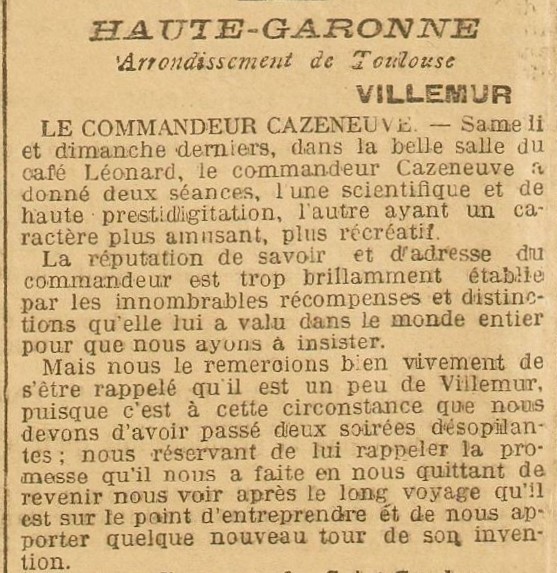 2. Marius Cazeneuve en spectacle à Villemur   le 13 décembre 1901.