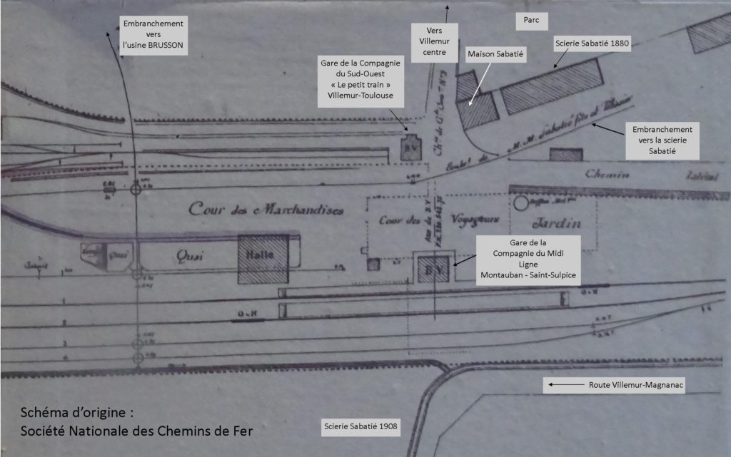 C’est au début des années 1880 que les Sabatié quittent le quartier Notre-Dame et le « vieux Villemur » pour s’installer sur la rive gauche. Le lieu est mûrement choisi. Antoine Sabatié profitant sans doute des conseils avisés de son beau-père Dominique Cocural – conseiller municipal- construit une superbe maison à proximité de la future voie ferrée Montauban Saint-Sulpice dont le tracé a été approuvé par décision ministérielle en 1879. Sur ce vaste terrain, outre la vaste demeure aux multiples dépendances, Antoine Sabatié fait aménager un très beau parc avec un bassin en son centre … mais également les ateliers de sa scierie qu’il reliera plus tard à la ligne de chemin de fer par un embranchement particulier.