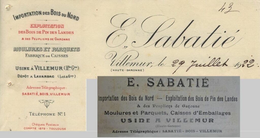 Créée au début des années 1880, passée ensuite dans le giron de la Manufacture de pâtes alimentaires Brusson, et retrouvant son autonomie en 1908, la scierie Sabatié va participer de façon notoire à l’essor économique de Villemur dans le premiers tiers du 20e siècle.