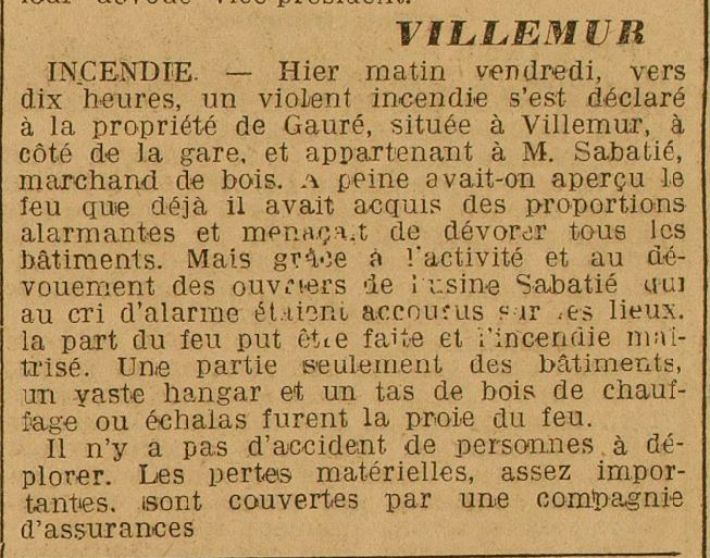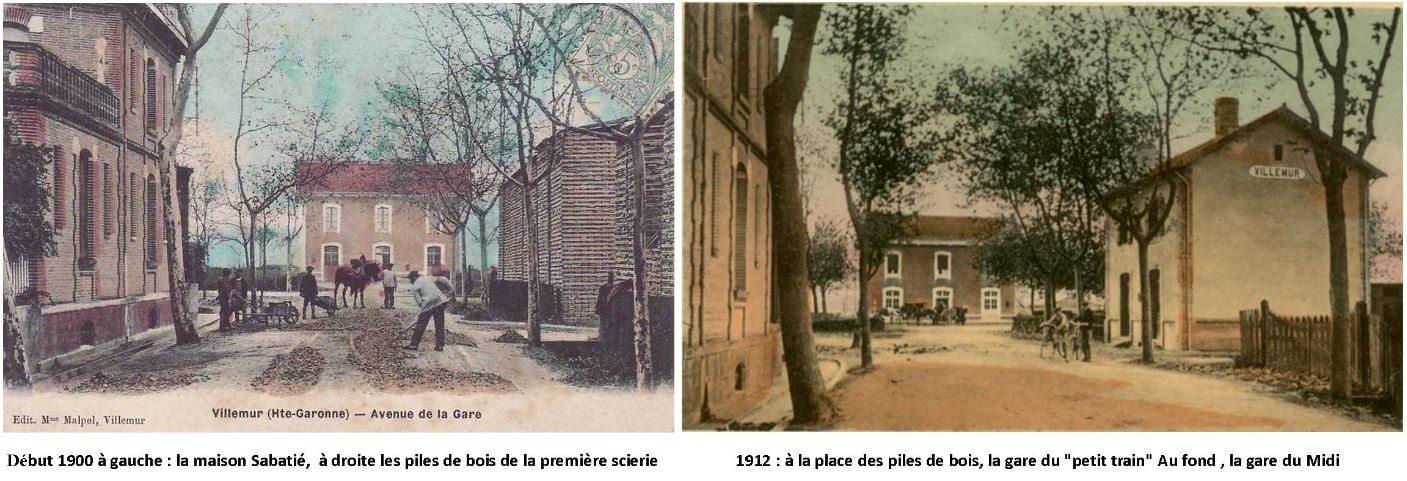Pour Emile Sabatier, pas de doute, le train est le moyen le plus moderne pour recevoir la matière première et expédier sa production. En 1901 il employait encore quatre marins ( Jean Malpel 60 ans, Jean Lestang 64 ans, Jean Gay 44 ans, autre Jean Lestang 58 ans) pour piloter ses bateaux mais le temps des bateliers est révolu témoin la mise en vente d’un de ses bateaux en 1907. L’effectif est en augmentation constante, Emile Sabatié ouvre des dépôts de bois dans le Lot-et-Garonne à Lavardac et Casteljaloux à proximité de la forêt des Landes, et 60 ouvriers travaillent à la scierie Sabatié en 1911. Au cours de cette année un incendie se déclare sur le site de l’ancienne scierie dans l’enceinte de l’usine Brusson. De nombreuses piles de bois y sont encore stockées, une trentaine partent en fumée, mais les bâtiments adjacents sont préservés grâce à l’intervention conjuguée des ouvriers sur place et « des gens accourus de Villemur.»
