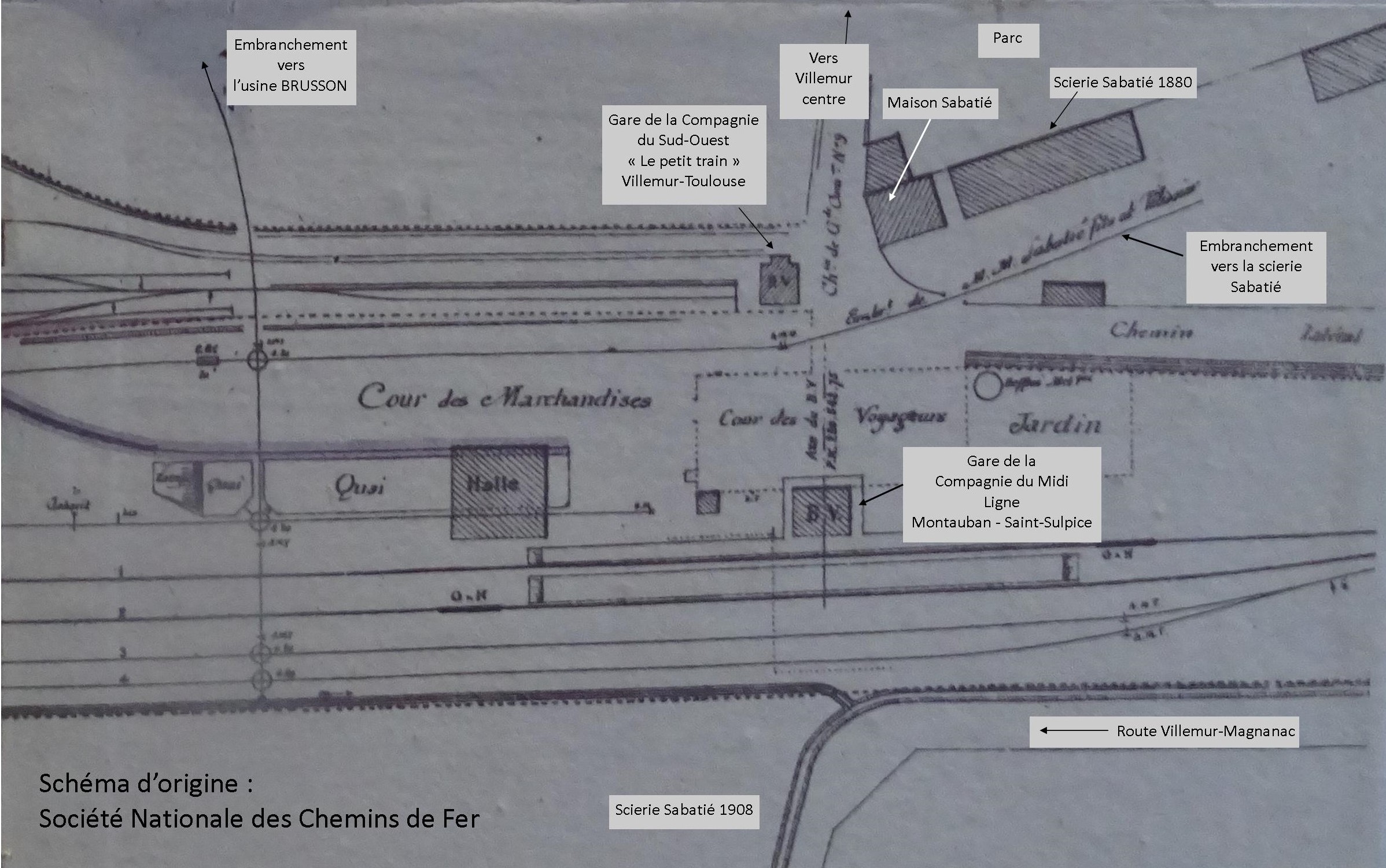 1 : ADHG 31 2, 3, 4, 5, 7, 9, 10, 11 : coll J.C. François 12 : SGE Contact 13 : JC François 14 : Chambres-Hotes.fr. Plan de la gare : SNCF Vue aérienne scierie : ign.fr