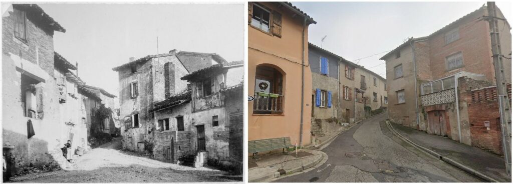 Côté droit de la rue Saint-Michel, à hauteur du n°27 actuel, se situait jadis le seul commerce du quartier, l’épicerie de Marie Pélissier, présente dans le recensement de 1911. Quelques maisons plus haut face à l’ancienne caserne, débouche la petite rue des Albigeois (en référence à la Croisade) ancienne rue de la Gimade. En remontant, au n°29 l’actuel presbytère de la paroisse sis auparavant rue Saint-Louis.
