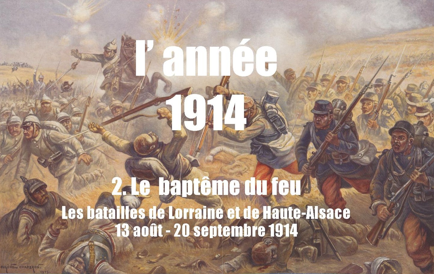 L’ année 1914. Centenaire de la Grande Guerre. 2. Le baptême du feu Dans la Bataille des Frontières de ce début d’août 1914, la première offensive française s’effectue dans le Haut-Rhin. Pour les français, reconquérir les territoires perdus est un fort symbole politique et moral, alors que, côté allemand, von Moltke accorde très peu …