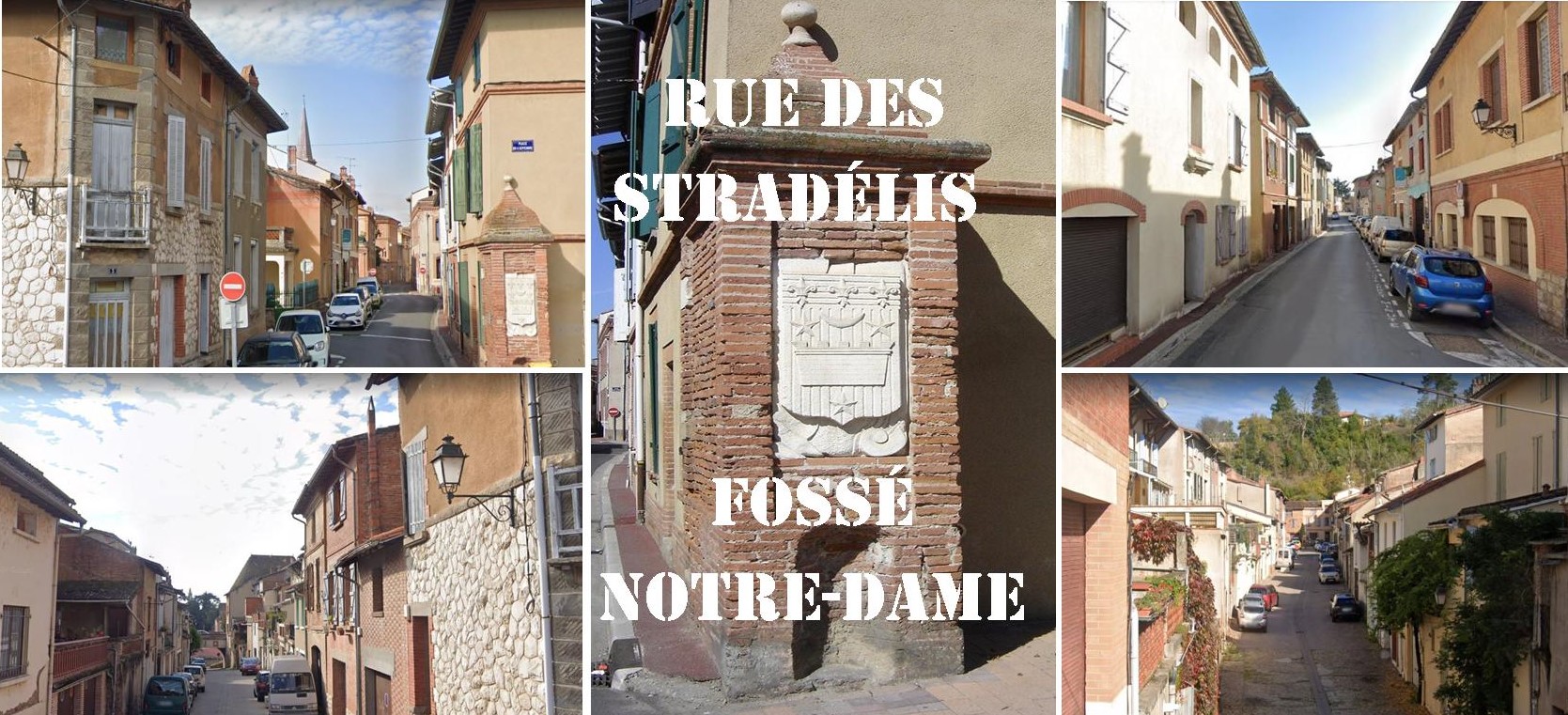 La rue des Stradélis La lecture attentive du premier cadastre de la ville (compoix de 1583/1638) ne fait aucun état de « la rue des Stradélis » mais par contre, mentionne « la rue de la porte Saint-Roch », partie de la voie du haut de la ville entre la rue Saint-Michel et le Fossé …