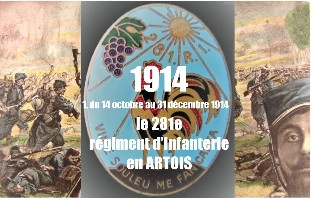 1914 le 281e Régiment d’Infanterie en Artois 1. Du 14 octobre au 31 décembre 1914 A l’aide de la correspondance de Camille Terrisse, nous reprenons le fil de sa « campagne » de 14-18 . Après le baptême du feu en Alsace, et de brefs mais durs combats dans les Vosges, voilà le 281e Régiment d’Infanterie en …