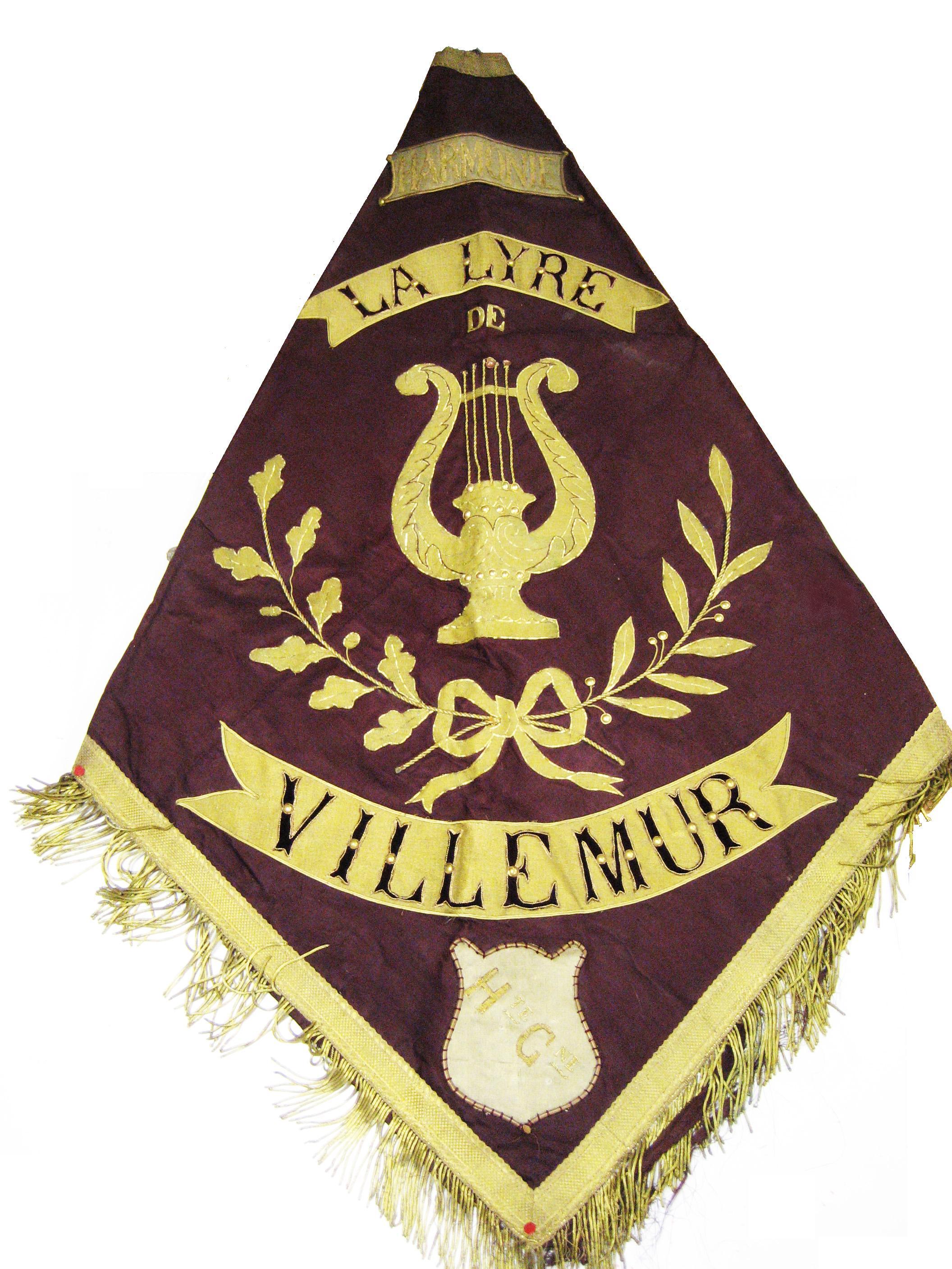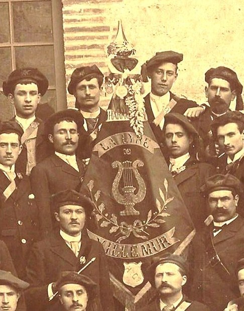 Il y a 130 ans à Toulouse, Antonin Brusson, mélomane averti, découvrait la musique d’harmonie au cours d’une période militaire, car en ce temps-là, tout régiment avait sa musique. De retour à Villemur, en 1887, il créée la Lyre Villemurienne, formation harmonique dont il supporte tous les frais. Nous n’avions de cette formation qu’une photographie ancienne datant de 1896. Les 38 musiciens y posent fièrement, regroupés autour de leur bannière, leurs instruments à leurs pieds. Il y a une paire d’années, nous retrouverons dans les locaux en ruines de l’usine Brusson, la caisse… vide qui avait contenu cette bannière !