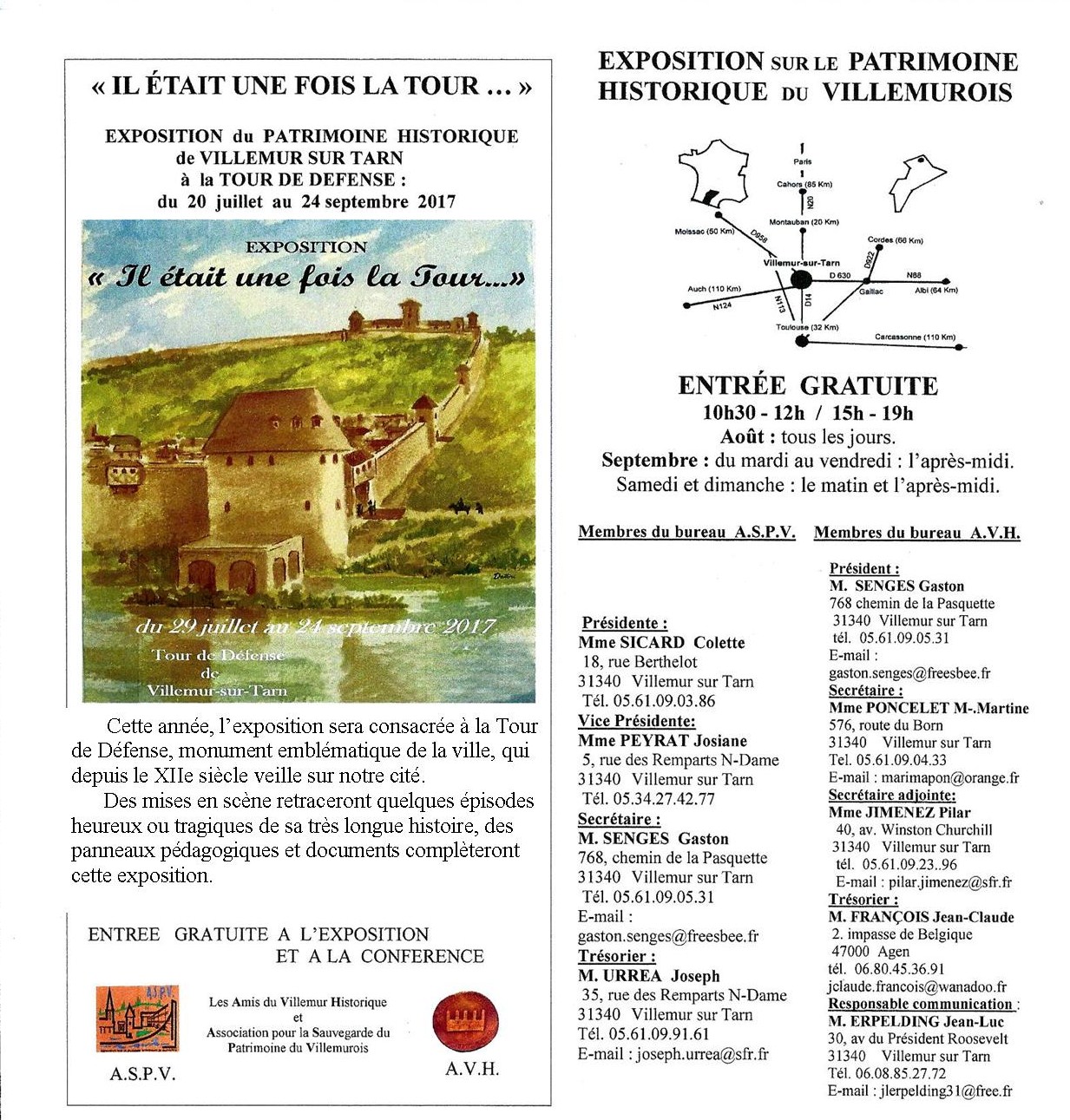 L’exposition 2017 a fermé ses portes le dimanche 24 septembre avec un bilan très positif, la satisfaction d’avoir fait découvrir aux visiteurs la longue et riche existence de la Tour de Défense, et à travers elle, quelques facettes de l’Histoire de la ville.