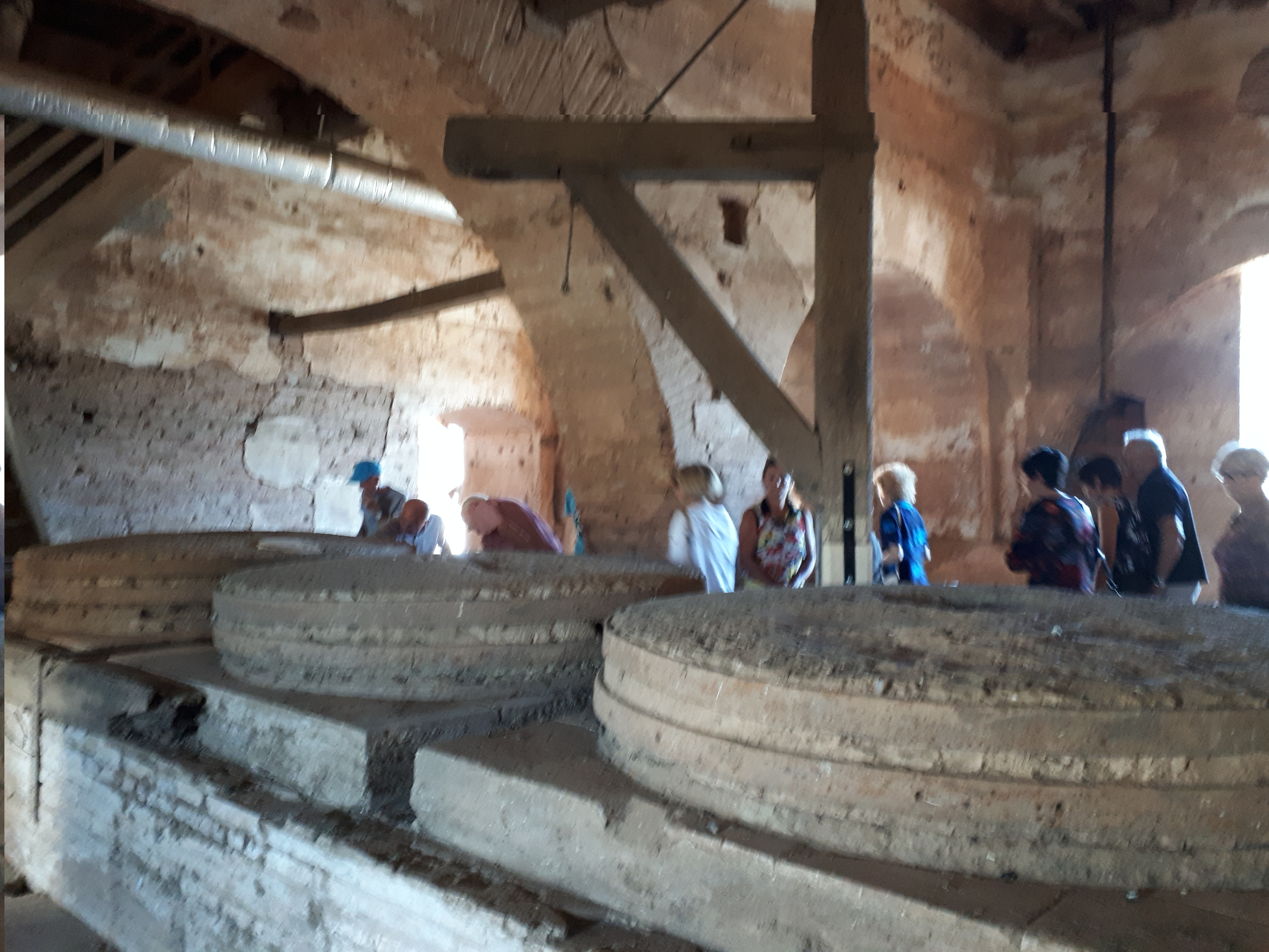 Deux guides érudits pour satisfaire notre curiosité, deux guides qui nous ont expliqué le fonctionnement du moulin à blé mais aussi du moulin à foulon pour la laine car à Villemur étaient également fabriquées différentes sortes d’étoffes.