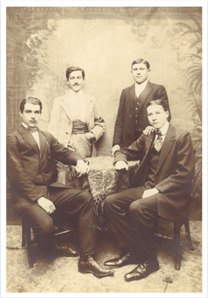De gauche à droite, Georges Malpel dit La Prusse, Raoul Majorel, Joseph Balat tué en 1916 à Verdun et Fernand Bécade mort en 1918.