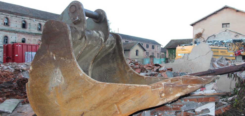 Après une opération de désamiantage, ce sont pelles mécaniques et bulldozers qui sont rentrés en action.