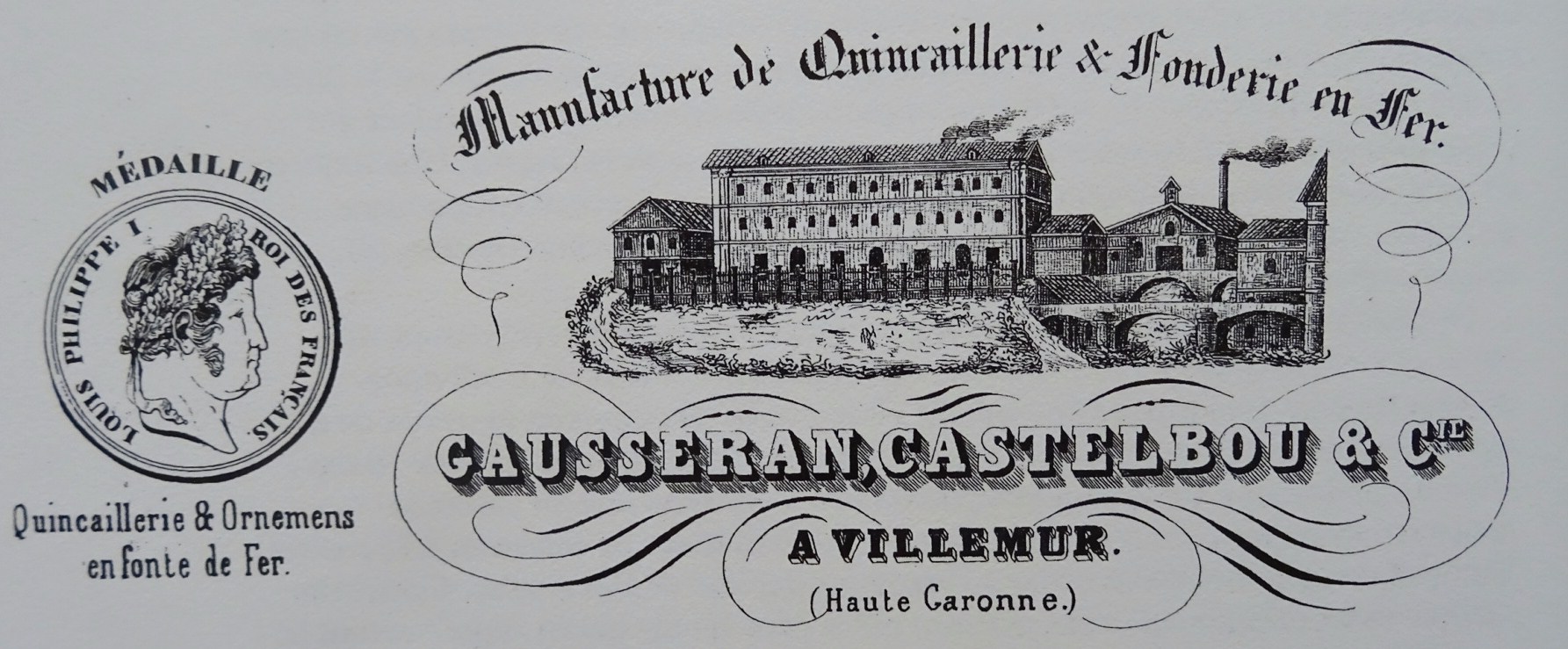 Mais ce quartier va végéter quelque peu pendant des années malgré l’arrivée de quelques établissements dans cette période de la première révolution industrielle. En 1837 s’implante, une fabrique de ferronnerie et quincaillerie, fonderie en fer et en cuivre, la société Castelbou & Cie. Le 8 mars 1841, la société Castelbou et Cie devient la société Gausseran, Castelbou et Cie. M. Gausseran en est le directeur et occupe le dépôt de Toulouse. M. Castelbou est le gérant de la fonderie à Villemur. La dissolution intervient le 18 avril 1842. François Yarz, le grand fabricant et négociant en quincaillerie de Toulouse termine la fabrication des dernières marchandises commandées. Les locaux, propriété de Monsieur de Lostanges restent vacants une dizaine d’années, puis sont occupés à partir de 1853 par la compagnie Courthiade, une manufacture de laines qui s’essaiera plus tard sans succès à la fabrication de vermicelle, (1853-1860) avant d’être rachetée par Jean-Marie Elie Brusson en 1875. Le bâtiment principal de l’ancienne fonderie achetée en 1875 par les Établissements Brusson Jeune est l’actuel « bâtiment de l’horloge ».