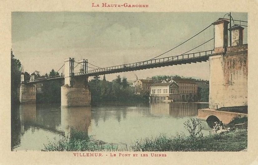 Jusqu’à cette date, la rive opposée n’est accessible que par les deux bacs du Port-haut et de Saint-Jean. La rive gauche c’est « delà l’aïgo », « de l’autre côté de l’eau » comme disent les vieux villemuriens ! Sur cette rive, peu de constructions, seulement quelques métairies, le Pas, Malaret, Gauré. Sur le plan de 1812, on distingue également un bâtiment au droit de la chaussée. Construit sous de Monsieur de Ménoire ou ses héritiers, il est l’embryon des premières industries (La ferronnerie Gausseran et Castelbou et dans un futur plus lointain, Brusson).