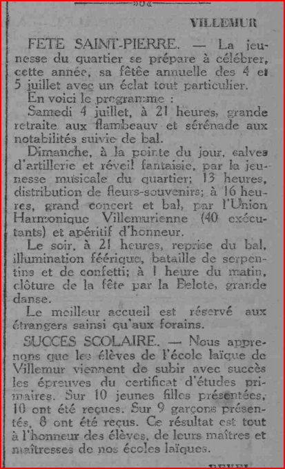 (1) La Saint-Pierre est fêtée le 29 juin.
