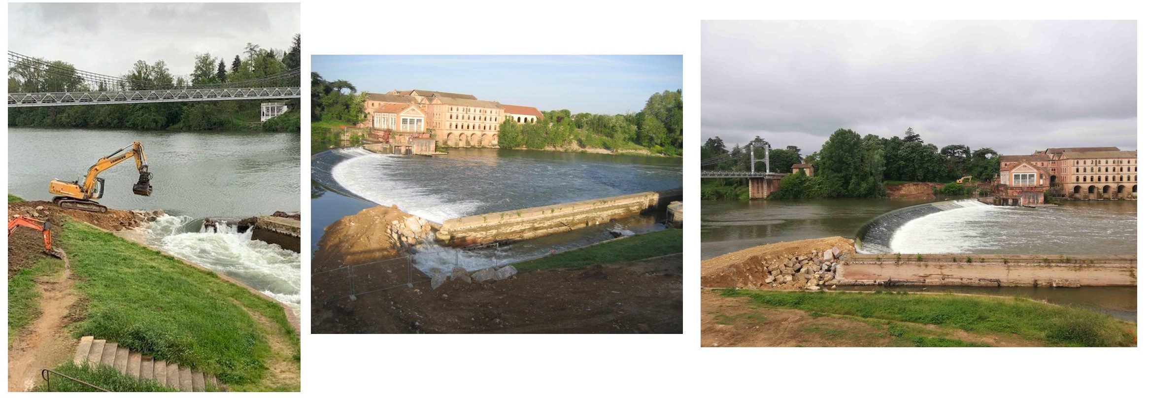 Dans les jours qui ont suivi, vous avez été nombreux à venir observer les allées et venues des camions d’enrochement et de la pelle mécanique s’avançant sur le Tarn. L’objectif de ces travaux d’urgence était de mettre hors d’eau l’ouvrage afin d’évaluer l’état de l’écluse mais également de sécuriser le site pour les riverains.
