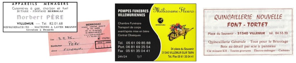 1: Coll AVH. 2,4,5,6,9, 10,11,12,14,15,16,17,19,20 et plaques de rues : JC François. 2 bis : Google map. 3 : ADHG 31. 7, 8 : e-monument.net 13 : Pascale Ourgaut. 18 : mairie de Villemur-sur-Tarn. Photos du chapitre Commerce : JC François et Pierre Villa.