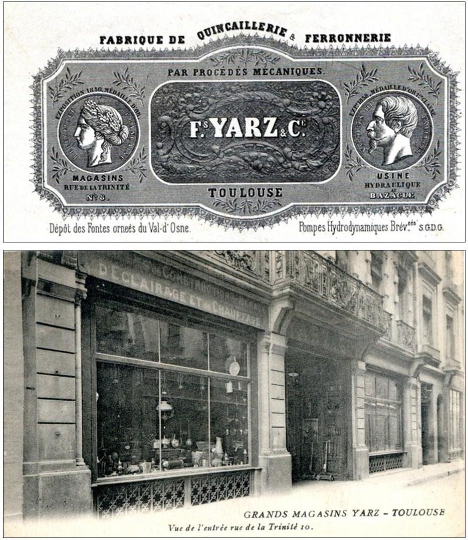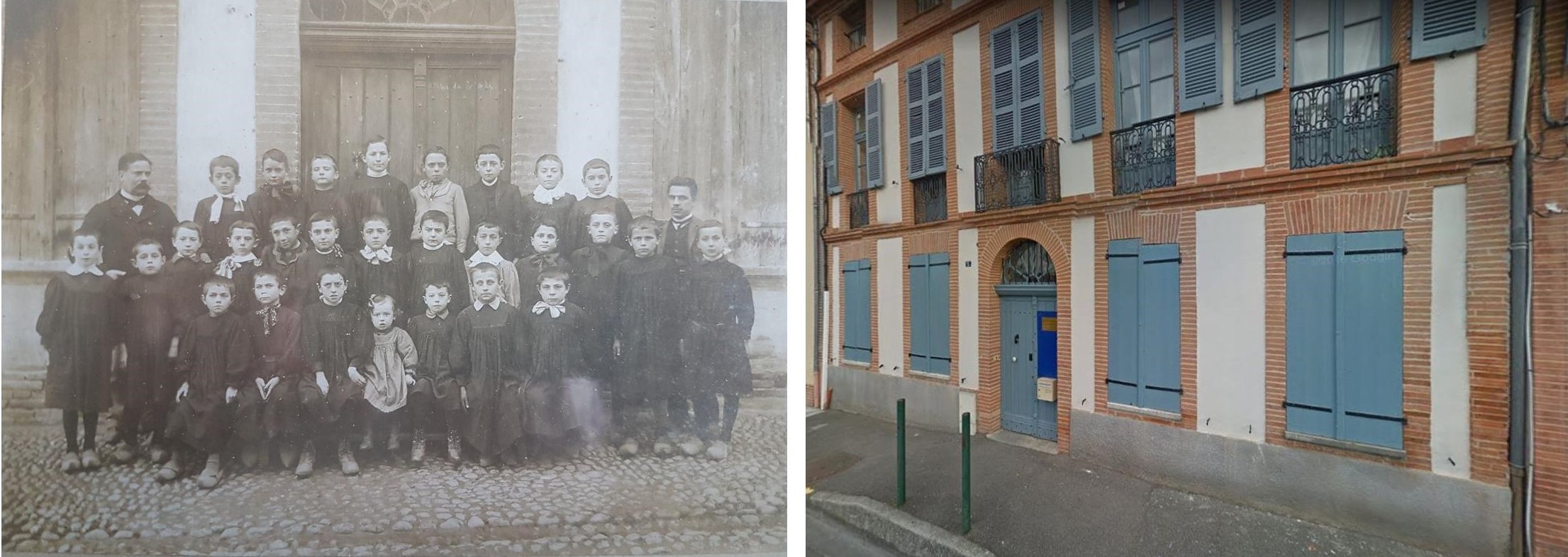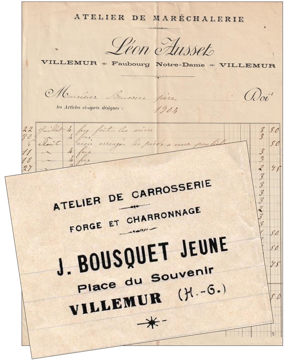 A la fin du 19e siècle, il n’est pas étonnant de retrouver autour de l’ancien foirail des commerces en rapport avec le monde agricole. Tout au fond la place, entre l’impasse de château et la rue de la côte, l’atelier de charron de Jean Bousquet surnommé « Toinasse », sobriquet hérité de son père Antoine; Marguerite Bousquet son épouse, était tailleuse de profession et donnait des cours de couture aux jeunes filles du quartier. Les Bousquet étaient charrons à Villemur depuis le milieu du 18e siècle, et Paul, le frère de Jean exerçait le même métier sur la rive gauche, avenue de Toulouse.