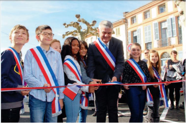 18. Inauguration de la place le 11 novembre 2018 par le maire Jean-Marc Dumoulin et les jeunes villemuriens.