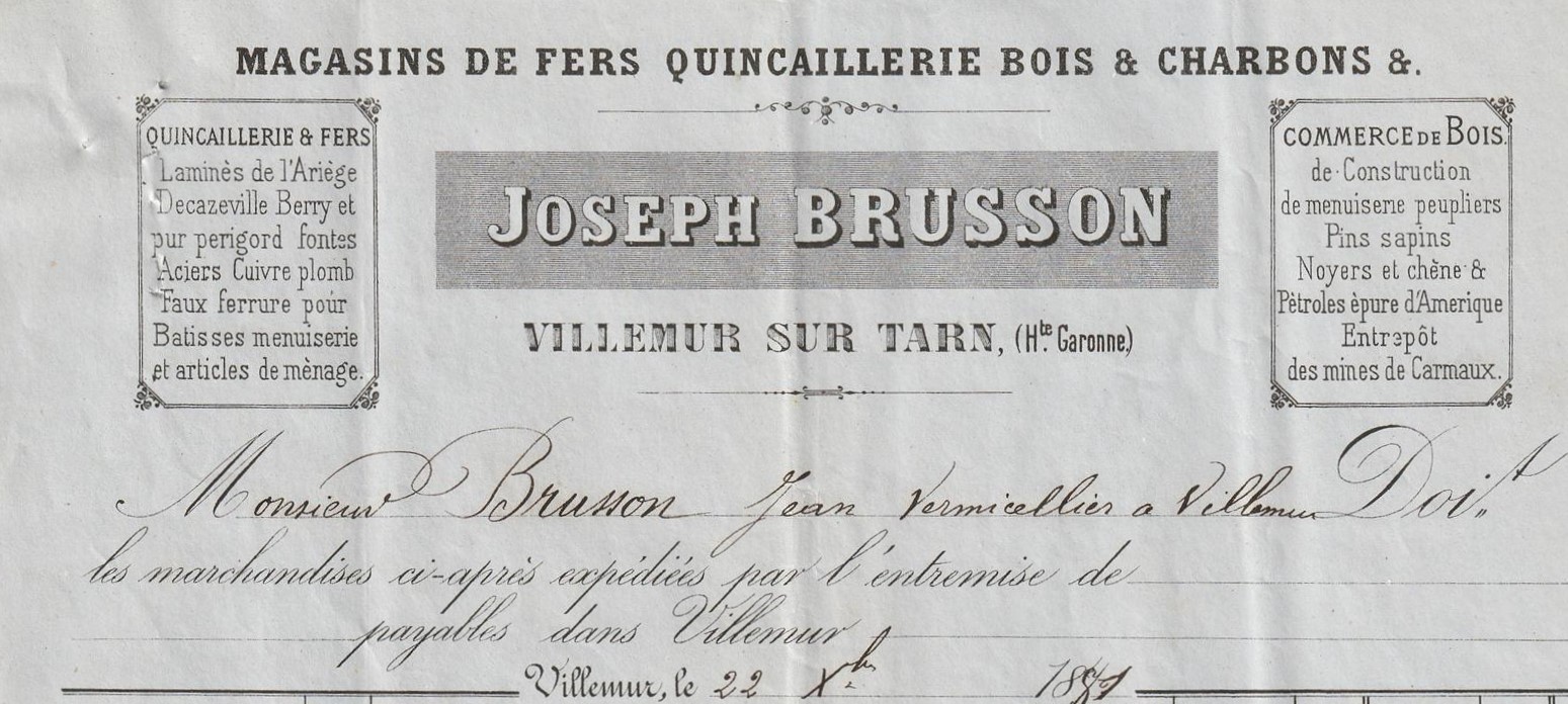 – Enfin, un des premiers commerçants de la place, à côté du café et à l’angle de la rue de la République, le marchand de fers et quincailler Joseph Brusson dit « Trente » déjà cité.