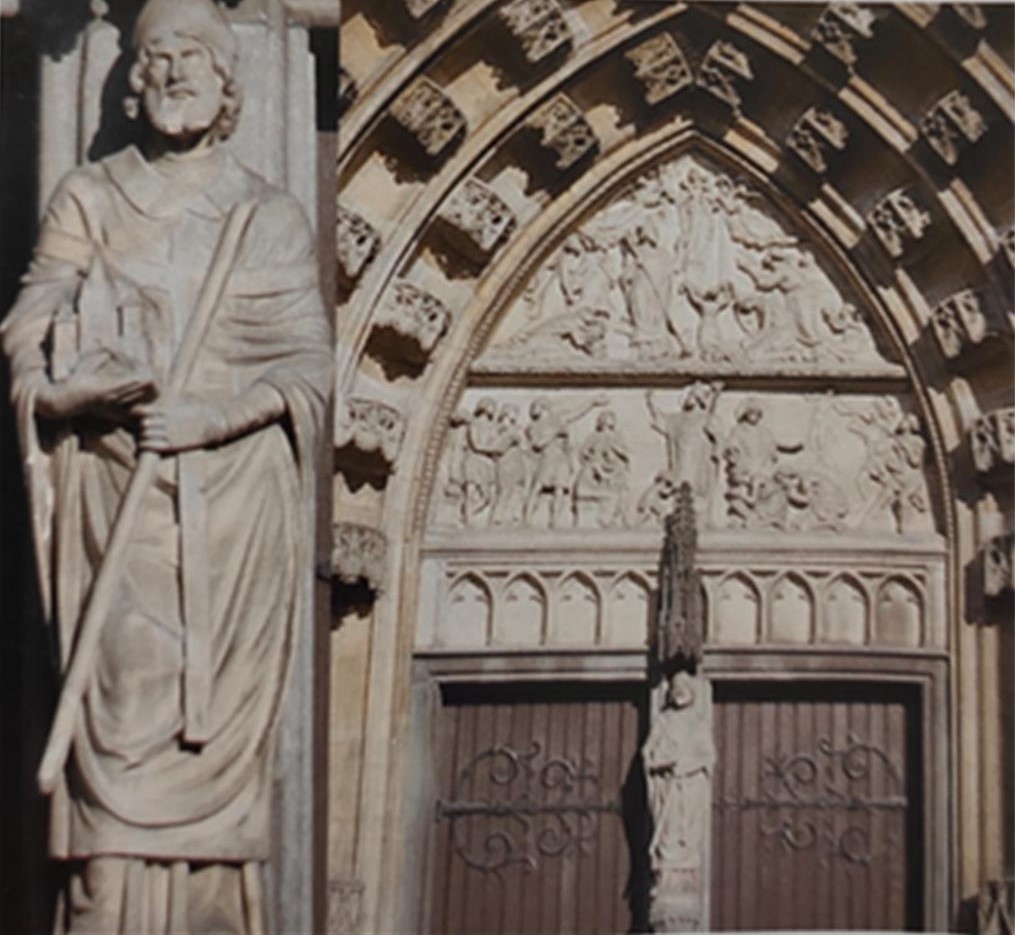 En 1867, les travaux de restauration du baldaquin de la cathédrale Sainte Cécile d’Albi entamés en 1858, s’achèvent. Reste à présent à doter le portail et son porche de statues. C’est à Pierre Bernard Prouha que la tâche de réaliser 15 statues et 12 anges est confiée.