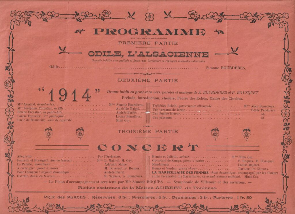 « À ce moment, un chœur de chanteurs, accompagné par la Philarmonique, exécute une cantate intitulée « Villemur lève-toi », chant de circonstance, dû à la verve imaginative d’un de nos compatriotes, et dont les strophes sont bien rendues par la voix claire et perçante du jeune Fauré. »
